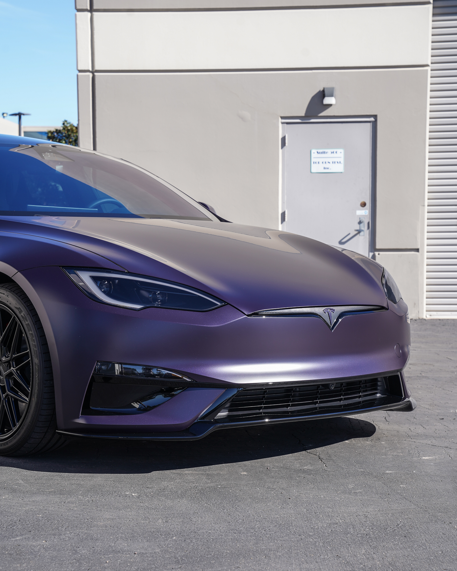 Tesla Model S Plaid full custom color-change with DYNOpurple-matte PPF.